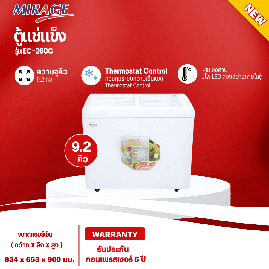 - ตู้แช่่แข็งฝากระจกโค้ง มิราจ รุ่น EC-260G สีขาว